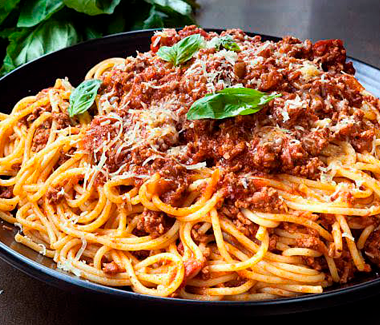 Molho de tomate refogado com suculenta carne moída e parmesão