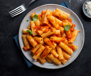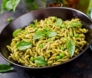 Massa tradicional Fusili ao molho pesto de manjericão e queijo parmesão